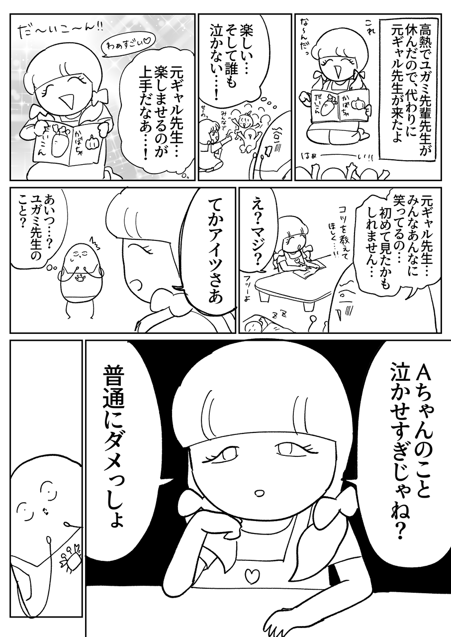 私も新人の頃で子どもを犠牲してしまって何にもできず1年探した結果保育士辞めよって思った最大の原因だから